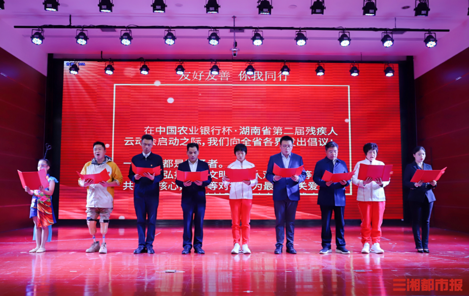 来自省残疾人田径队运动员,全国人大代表、省残联兼职副理事长、巴黎残奥会上勇夺四枚田径金牌的文晓燕,中国农业银行长沙分行三农金融部总经理兼团委书记罗胜,以及市州残联负责人、省残疾人运动队教练员、助残志愿者、助残服务机构、特教学校师生等9名社会各界代表向全省发出了“友好友善,你我同行”共同关爱残疾人倡议。