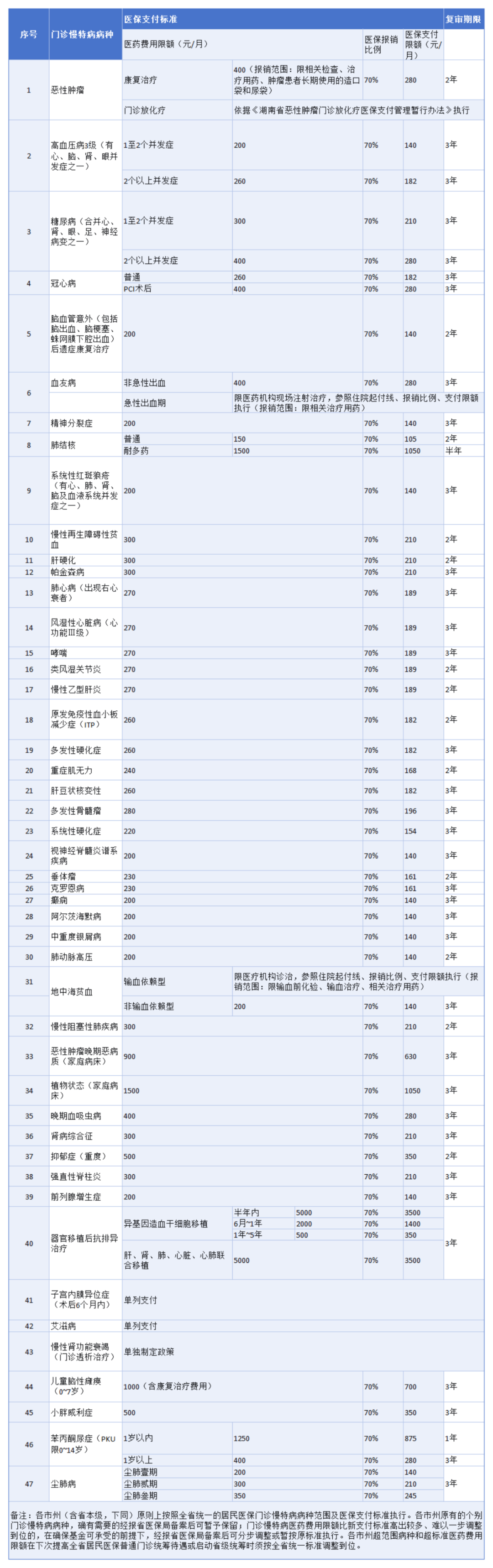 长沙市居民基本医疗保险门诊慢特病病种范围和医保支付标准