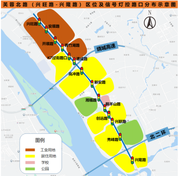芙蓉北路(兴旺路至兴隆路段)信号灯分布示意图 来源:开福交警
