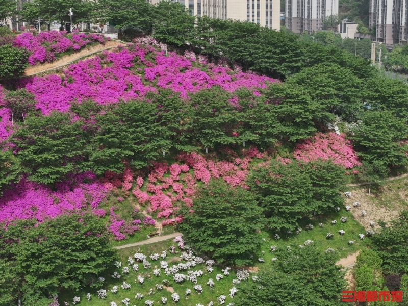 位于市区的晚安家居文化园,是一个兼具家居文化与生态景观的“赏花小众宝地”。记者14日上午到达现场时,正值花开正盛,粉红、粉白、紫红的杜鹃花沿着人行步道与木质栈道延展,仿佛春意流淌在山林之间,为市民营造出“上春山”的沉浸式体验。
