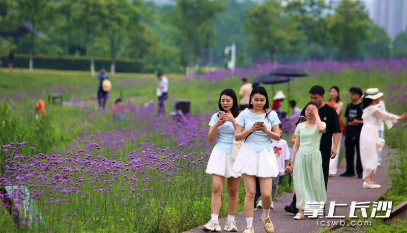 长沙晚报掌上长沙5月19日讯(全媒体记者 贺文兵)如梦似幻的紫色花海成为市民热门打卡地,绘就一幅温馨浪漫与生态之美的自然画卷……今日下午,记者在洋湖湿地公园看到,上百亩马鞭草迎来盛花期,众多市民徜徉在花海中赏花打卡。