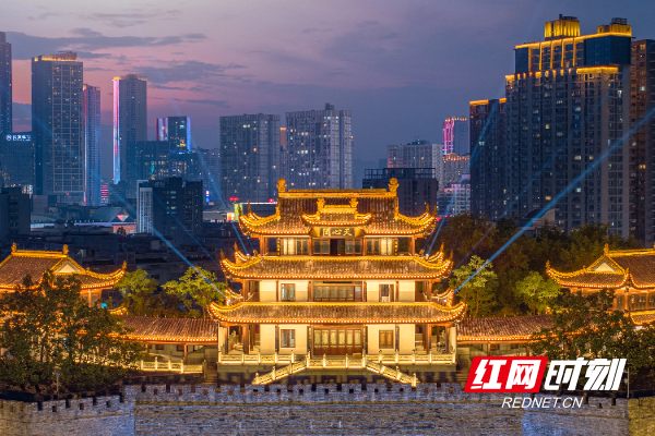 作为湖南省首个光影公园,当下,天心阁景区已成为不少外地游客开启长沙夜游的第一站。