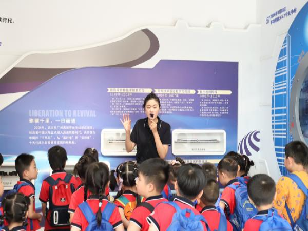 解说员老师用通俗易懂、生动活泼的语言阐释科学知识,充分调动起小朋友们观察、探索和发现的兴趣。孩子们在“轨道交通展”,队员们了解到了信号系统、拼装高铁以及乘坐交通工具等小知识;在“太空和地球展”,陈列的宇宙探查器和飞船模拟器更让孩子们挪不开脚步。