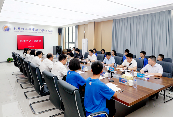 吴新伟为长郡外国语实验中学南校区师生讲授思政课。