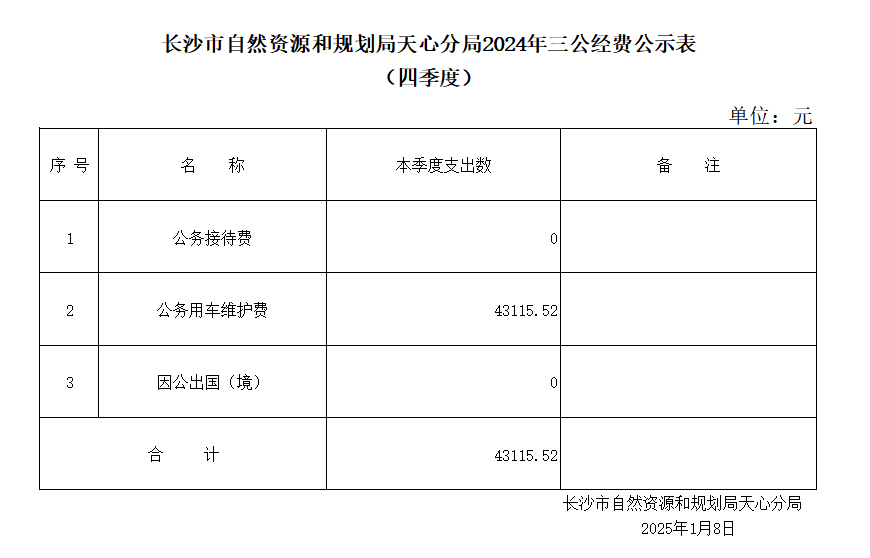 长沙市自然资源和规划局天心分局2024年三公经费公示表(四季度)